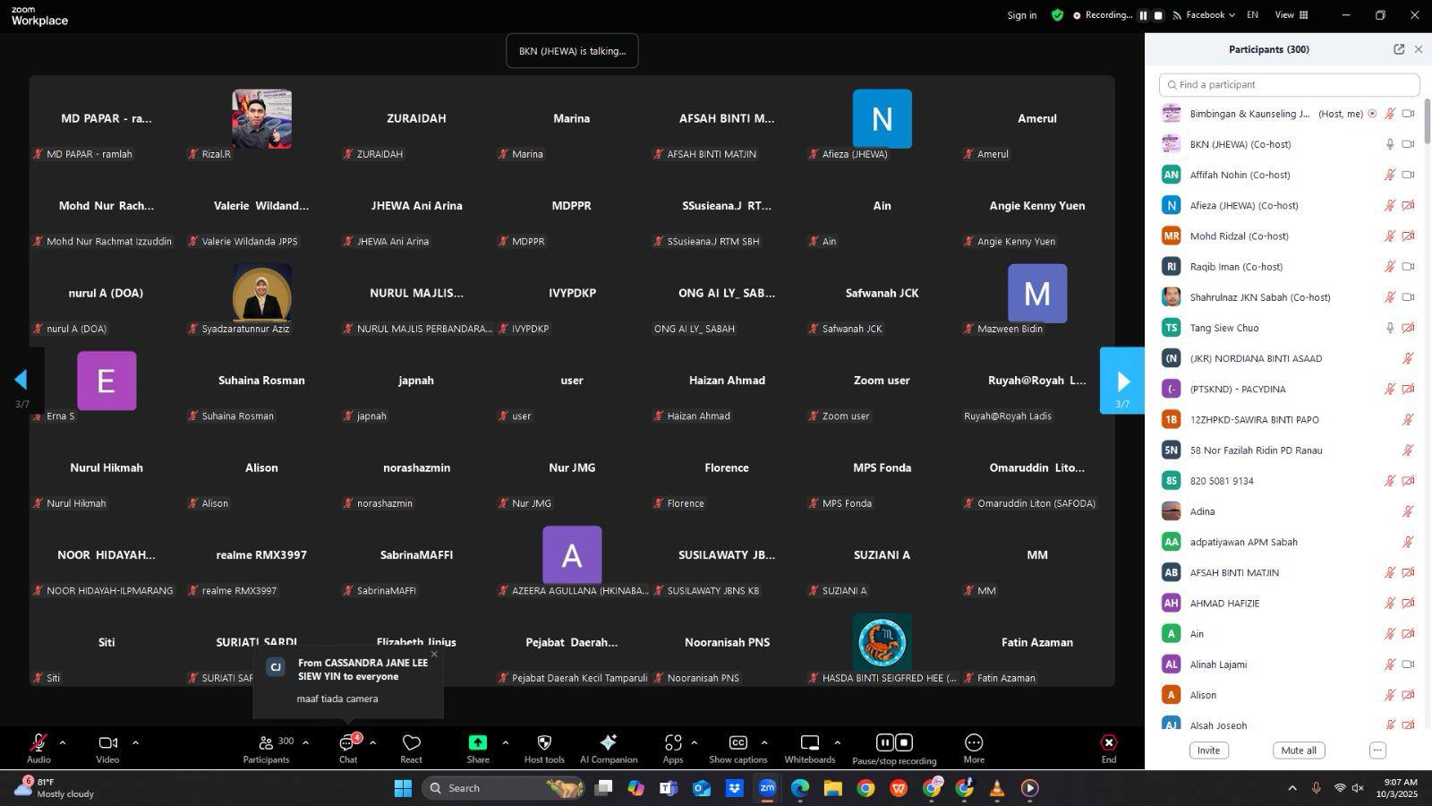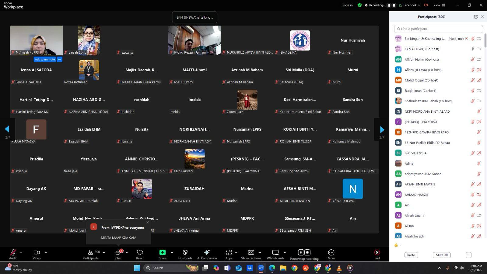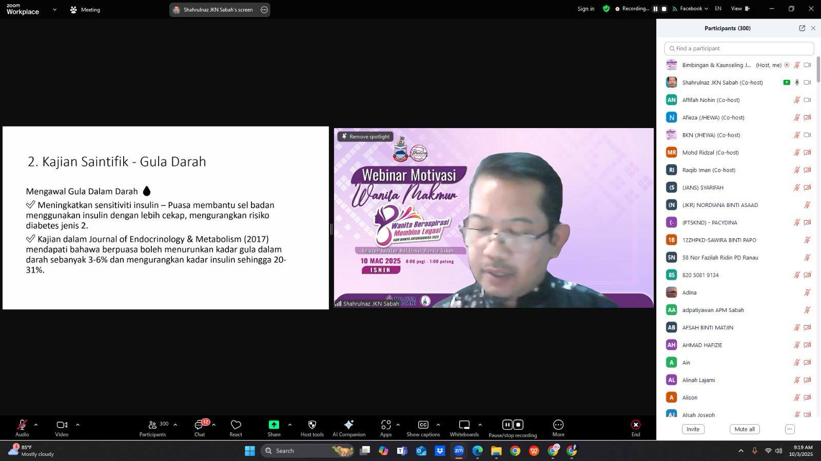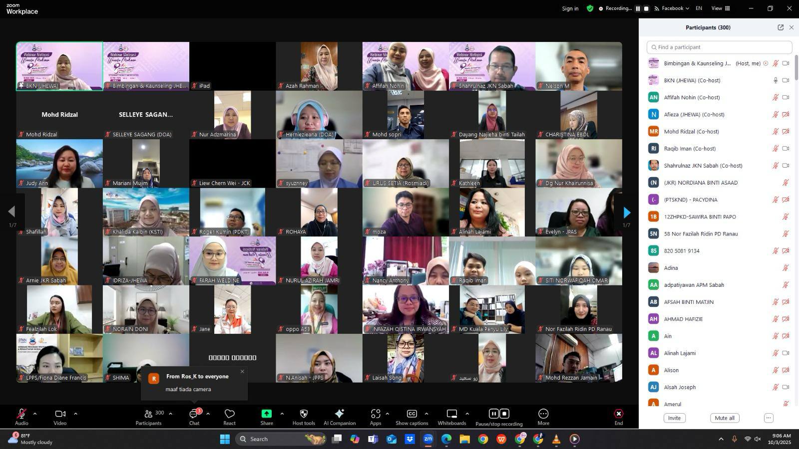 Kota Kinabalu, 10 Mac 2025 – Jabatan Hal Ehwal Wanita Sabah (JHEWA) telah berjaya menganjurkan webinar Motivasi Wanita Makmur bertemakan "Wanita Beraspirasi Membina Legasi" sempena Hari Wanita Antarabangsa 2025. Program yang diadakan dalam talian melalui aplikasi Zoom dan Facebook Live ini dirasmikan oleh YBhg. Puan Hajah Haslina Ismail, Pengarah JHEWA.