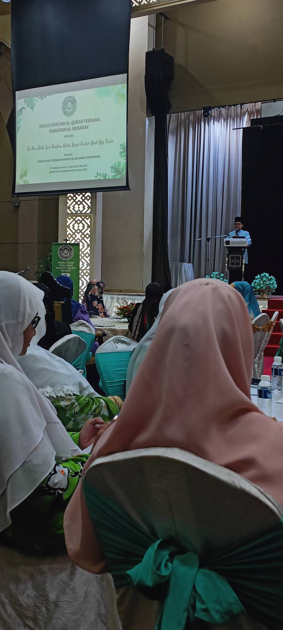 JHEWA telah menyantuni undangan daripada NGO berdaftar dibawahnya dalam satu majlis yang diadakan sebentar tadi. Sempena Nuzul Qur'an, Persatuan Tindakan Wanita Islam Sabah (PERTIWISA) menganjurkan Majlis Khatam Al-Quran Perdana Ramadhan Al-Mubarak. Acara tersebut berlangsung pada 17 Ramadhan 1446H bersamaan 18 Mac 2025 (Selasa), di Dewan Tun Sakaran, Dandai Raia Hotel.