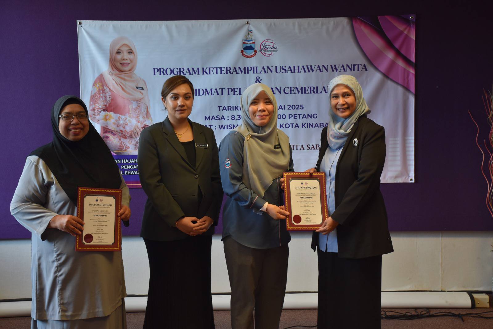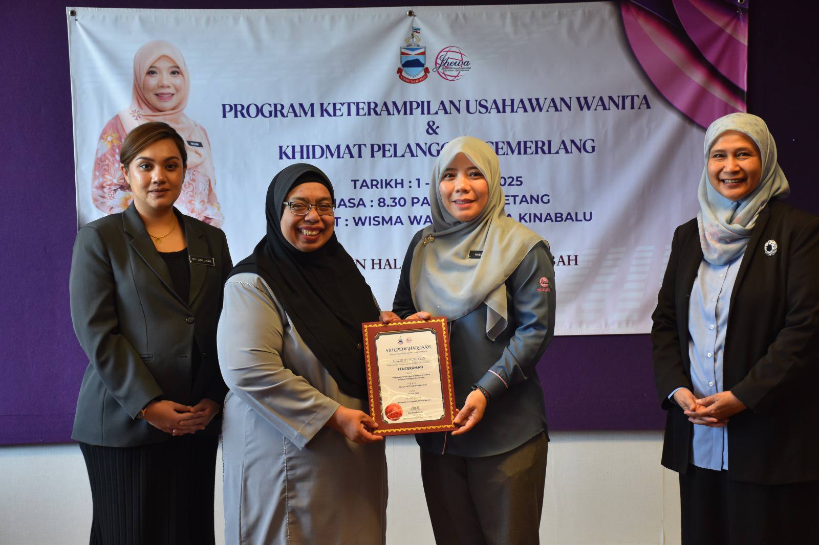 Kota Kinabalu, 4 Julai 2025 — Program Keterampilan Usahawan Wanita dan Khidmat Pelanggan Cemerlang yang dianjurkan oleh Jabatan Hal Ehwal Wanita Sabah (JHEWA) selama tiga hari sejak 1 hingga 3 Julai lalu, berlangsung dengan jayanya di Wisma Wanita, Kota Kinabalu.