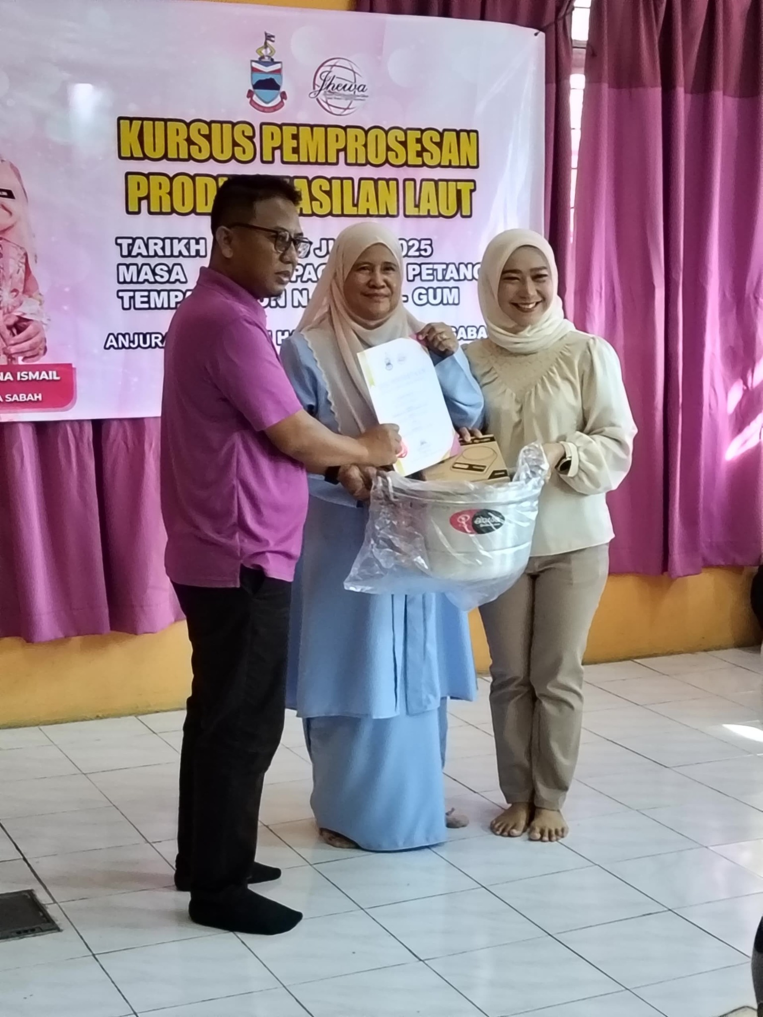 Gum-Gum, 24 Julai 2025 — Kursus Pemprosesan Produk Hasilan Laut yang dianjurkan oleh Jabatan Hal Ehwal Wanita Sabah (JHEWA) telah mencapai kejayaan besar selepas berlangsung selama tiga hari bertempat di Dewan Komuniti Dun N.50 Gum-Gum. Kursus yang bermula dari 22 hingga 24 Julai 2025 ini berjaya menarik perhatian 27 peserta daripada kumpulan sasar yang terdiri daripada komuniti tempatan yang berminat mendalami ilmu dan kemahiran dalam pemprosesan hasil laut.