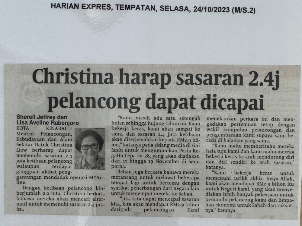 Christina Harap Sasaran 2.4j Pelancong Dapat Dicapai