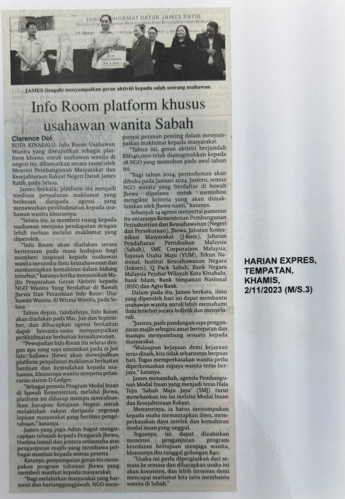 Info Room Platform Khusus Usahawan Wanita Sabah