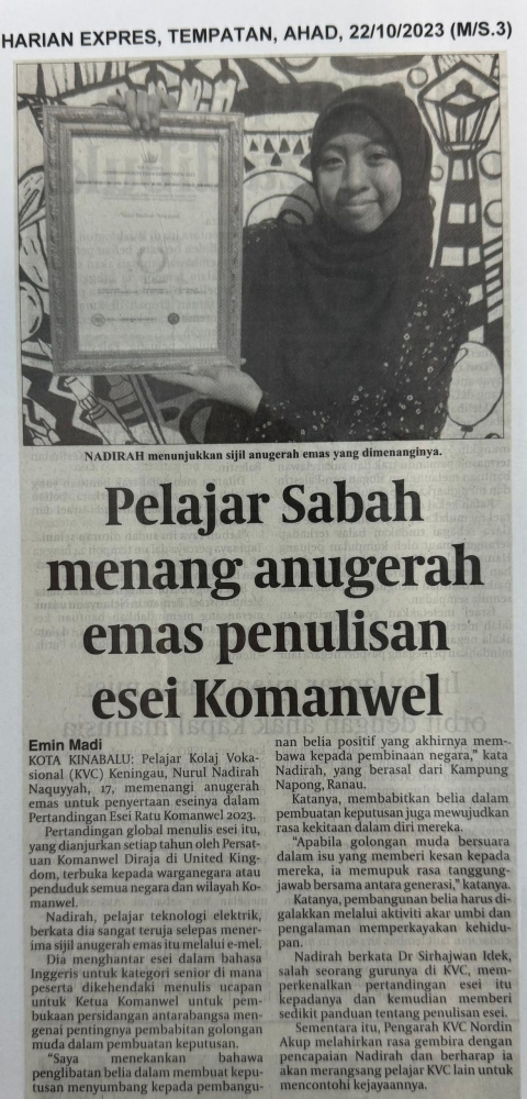 Pelajar Sabah Menang Anugerah Emas Penulisan Esei Komanwel