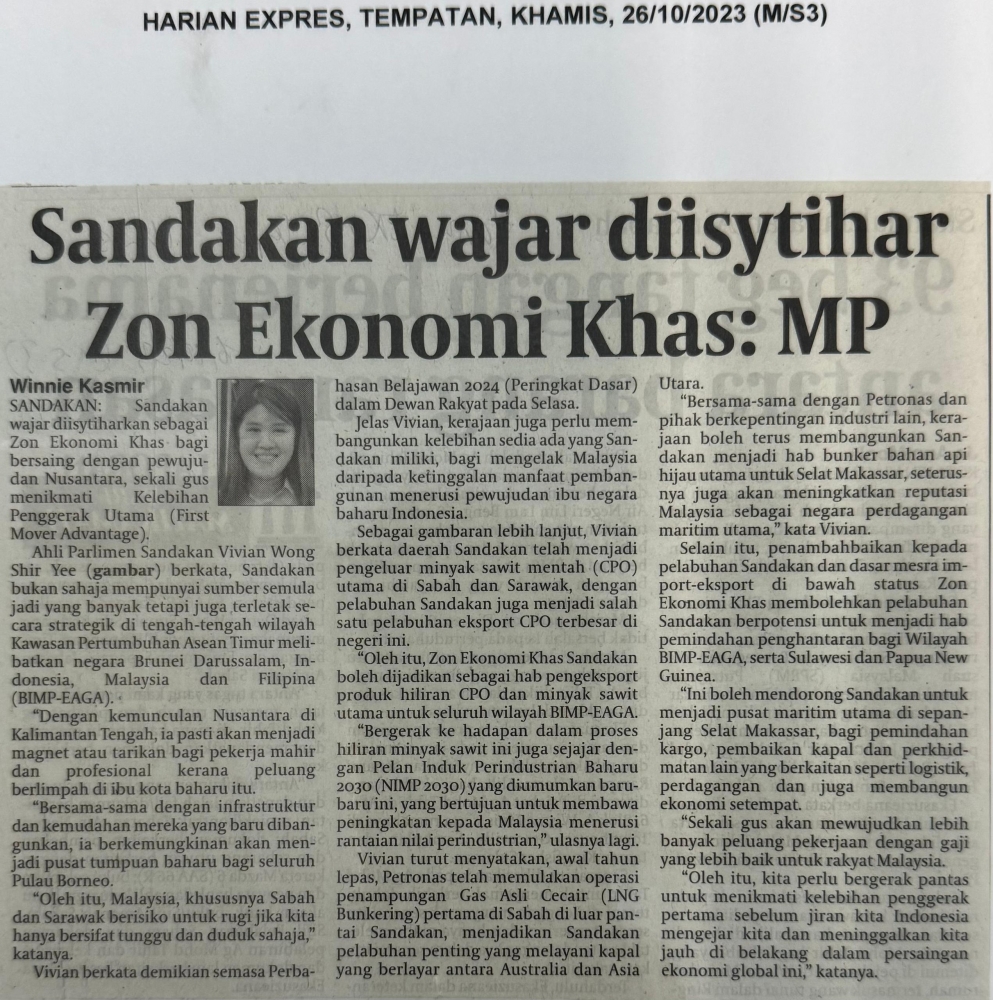 Sandakan Wajar Diisytihar Zon Ekonomi Khas: MP